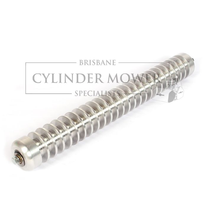 BCMS Grooved Roller with Stainless Steel Axle- 15mm Spacings @ 15mm depth makes this the most aggressive grooved roller on the market. Heavier than standard tube rollers to prevent float and greater penetration into the turf. Prevents leaf blades being folded beofre cutting to give a more accurate and aggresive cut. Also helps to cut seed heads. Radiused finishes to edges to prevent marking of turf when turning, Billett Aluminium spun perfectly true to ensure a consistent roll first time everytime. Australian Made and Australian Quality.
